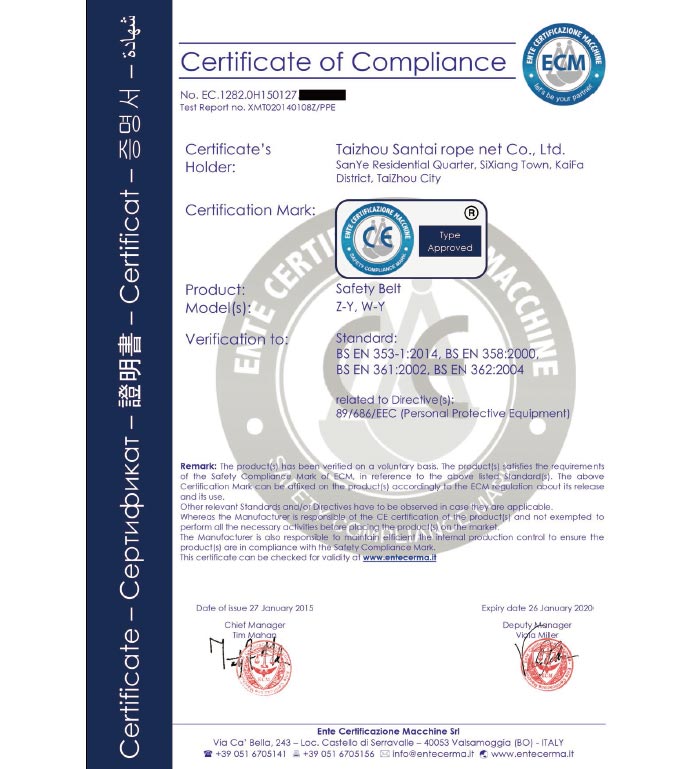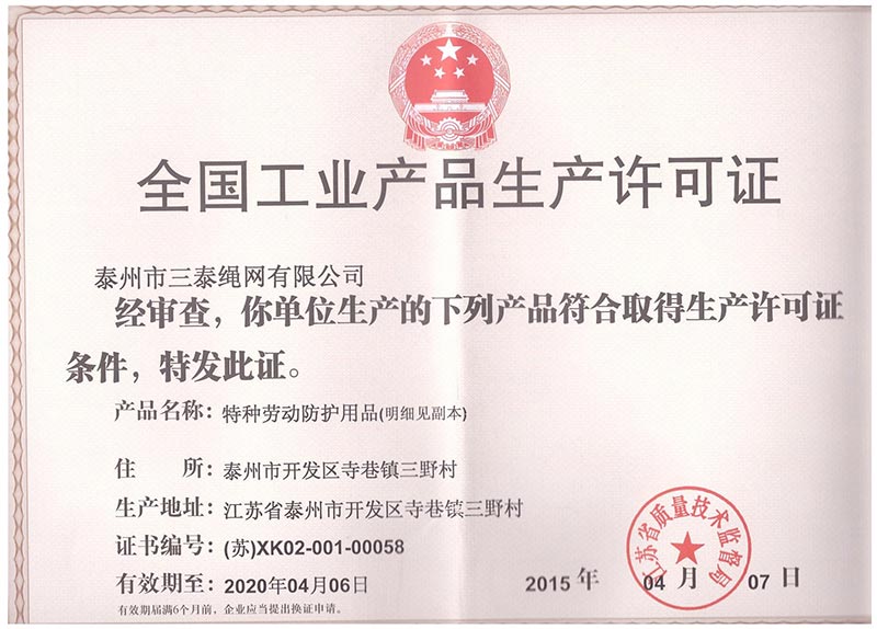 泰州市三泰健康科技有限公司(原 泰州市三泰繩網(wǎng)有限公司),本公司成立于1988年12月22日,至今近30年的生產(chǎn)歷程。多年來的生產(chǎn)經(jīng)驗(yàn),加之我們不斷的創(chuàng)新,已經(jīng)建設(shè)成為集研制、開發(fā)、生產(chǎn)、銷售為一體的龍頭企業(yè)。公司生產(chǎn)線由捻線車間、制繩車間、織網(wǎng)車間、織帶車間、織(絞)繩車間、安全網(wǎng)組裝車間、安全帶組裝車間、檢驗(yàn)室等組成。企業(yè)現(xiàn)有職工155人,企業(yè)管理人員6名,市場(chǎng)研發(fā)人員8名,專業(yè)質(zhì)檢人員2名,......